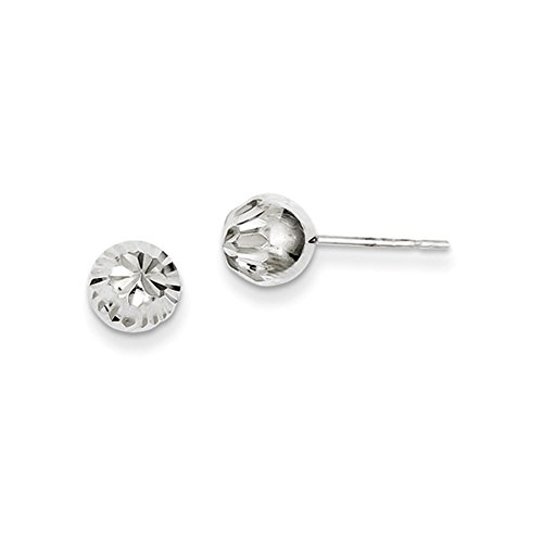Put a little sparkle in your style with these 7mm ball earrings fashioned from rhodium plated sterling silver with a diamond-cut design that catches and reflects light. Traditional friction back posts.Feature