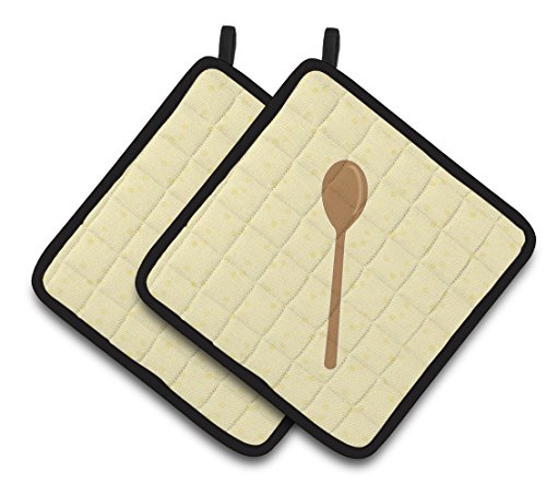 Caroline's Treasures BB7285PTHD Wooden Spoon on Yellow Decorated Pot Holder, 7.5HX7.5W, Multicolor