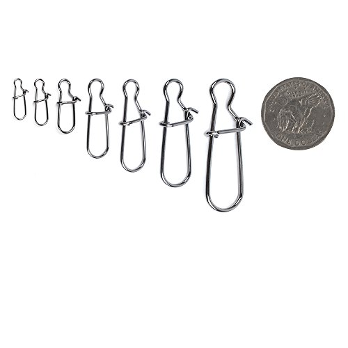 Hooked Snap #0 | 12lbs (6 kg) TEST | Length:0.5" (13mm) #1 | 44lbs(20kg) TEST | Length:0.6" (15mm) #2 | 55lbs(25kg) TEST | Length: 0.7"(17mm) #3 | 77lbs(35kg) TEST | Length0.8" (20mm) #4 | 88lbs(40kg) TEST | Length:0.9"(24mm) #5 | 99lbs((45kg) TEST | Length:1.1"(29mm) #6 |110lbs(50kg) TEST | Length: 1.3"( 34mm) #7 |132lbs(60kg) TEST | Length: 1.6"(40mm) #8 |182lbs(80kg) TEST | Length:1.9"(48mm)
