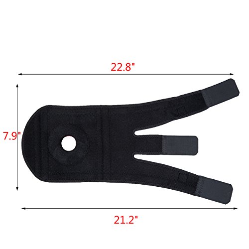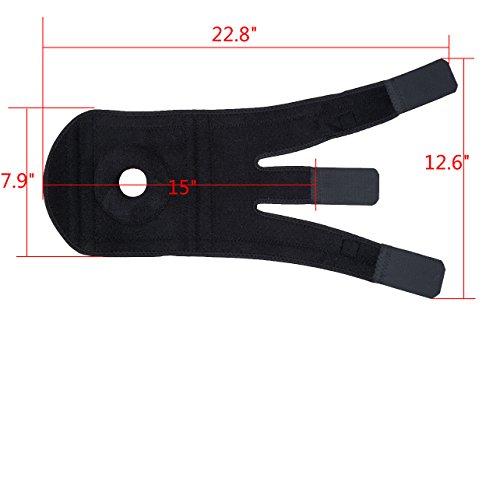 Fully adjustable Knee Brace. With three strong velcro straps, it could fits most knees with the circumferences of 30-52CM. Size in XL, with a width of 24CM, total length of 55CM. While you wrap the knee brace on your knee, it could be wrap around your knee with a custom fit and self controlled compression. If the middle velcro strap is too long for you, you can trim the extra length which may cover the kneecap and rub your skin by yourself.
