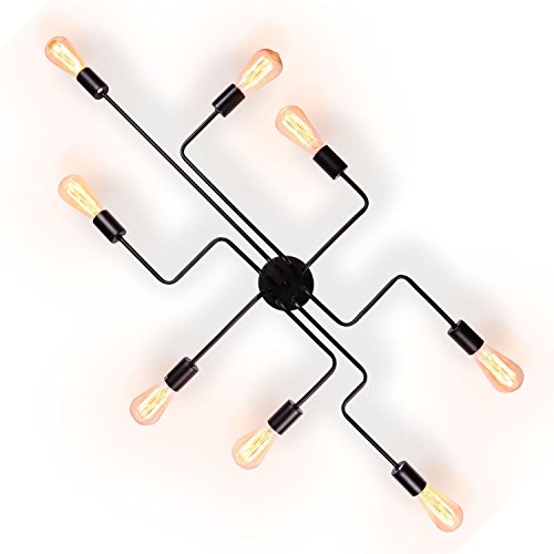 Unitary Brand Black Metal Steel Art Dining Room Flush Mount Ceiling light with 8 E26 Bulb Sockets 480W Painted Finish