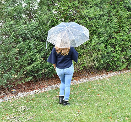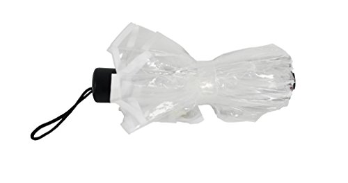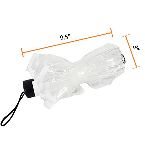 -. Feature : SEE IN ALL DIRECTIONS - Fashionable folding umbrella is made of transparent water-proof EVA plastic, which allows you to see in all directions around you. / COMPACT & PORTABLE - This clear travel umbrella opens to a full coverage of 36" diameter, yet folds to compact size of only 9.5"L x 3"D. Easy to take along anywhere. Keep in your car, at home, at work, in your tote bag. / STURDY FRAME - Sturdy frame with durable reinforced ribs helps prevent the umbrella from flipping inside out, keeping you nicely shielded from the rain. / DETAILS - Manual operation. Constructed with a sturdy vinyl canopy and reinforced steel ribs. Durable plastic handle. Fully opened: canopy diameter 36". Length 23". / Home-X® is a registered trademark of Simply Home Solutions.