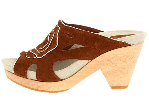 With nary a hint of restraint, the Earthies Tropez is ready to whisk you away to an evening of gallery-hopping and wine-tasting. The spiraling floral accent is lost on no one, while the silver piping embellishment adds elegance and depth. Sculpted from genuine hardwood, the base and footbed of this women's sandal provide tireless support while the breathable upper encourages an utter disregard of self-imposed curfews. "Runs Wide