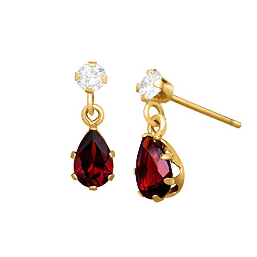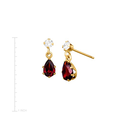 Perfectly petite, these garnet and white topaz drop earrings make for an eye-catching little accent. Pear-cut natural garnets suspend from round-cut natural white topaz for a total weight of 1 ct set in 10K gold. Pieces measure 1/2 by 1/8 inches.