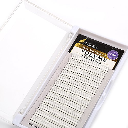Bella Hair Eyelash Extension C/D Curl 3D Volume Individual Lash Tray 10/12/14mm Thickness 0.07mm Pre-made Fan (C Curl x 10mm)