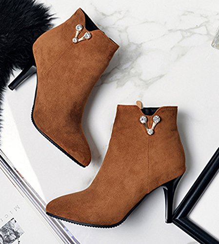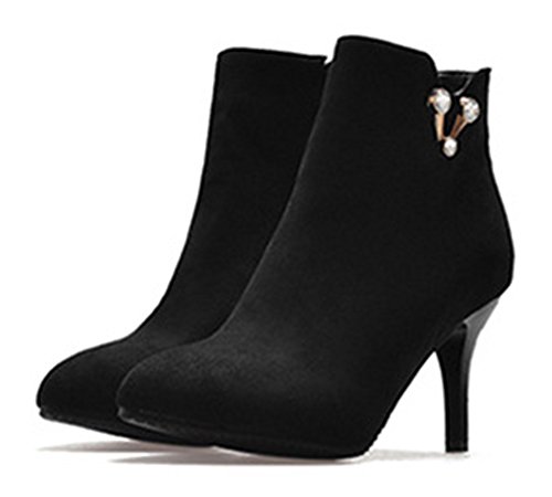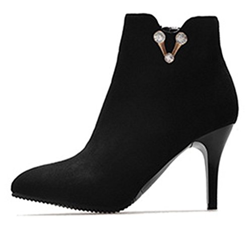 Binding : Apparel Product Description This pair of shoes is for women, girls, young ladies and office workers. You will look sexy and chic when wearing them. The heels measure 3.1 inches. You will look so cute in their block high heels. And you will not feel too tired when walking with them. The pair of shoes features inside zipper on the vamp upper. The design of pointed toe will make you look charming. You will look chic in their decoration of rhinestones. The sole is made of good rubber. You will feel comfortable in their soft bottom. They are of high quality and durable. Come on and take them away! 0