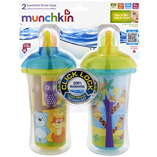 -. Title : Munchkin Click Lock Insulated Straw Cup, Giraffe/Forest, 9 Ounce, 2 Count