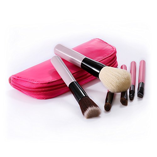 6PCS Start Makeup Brush Set with Leather Bag Color Pink