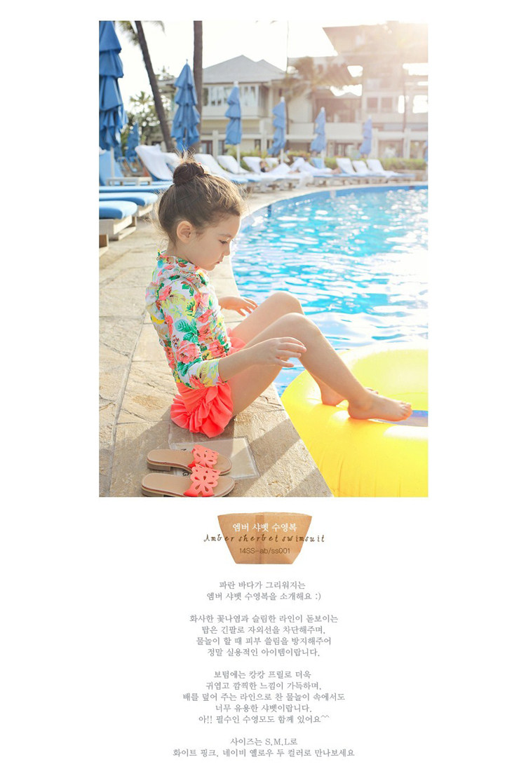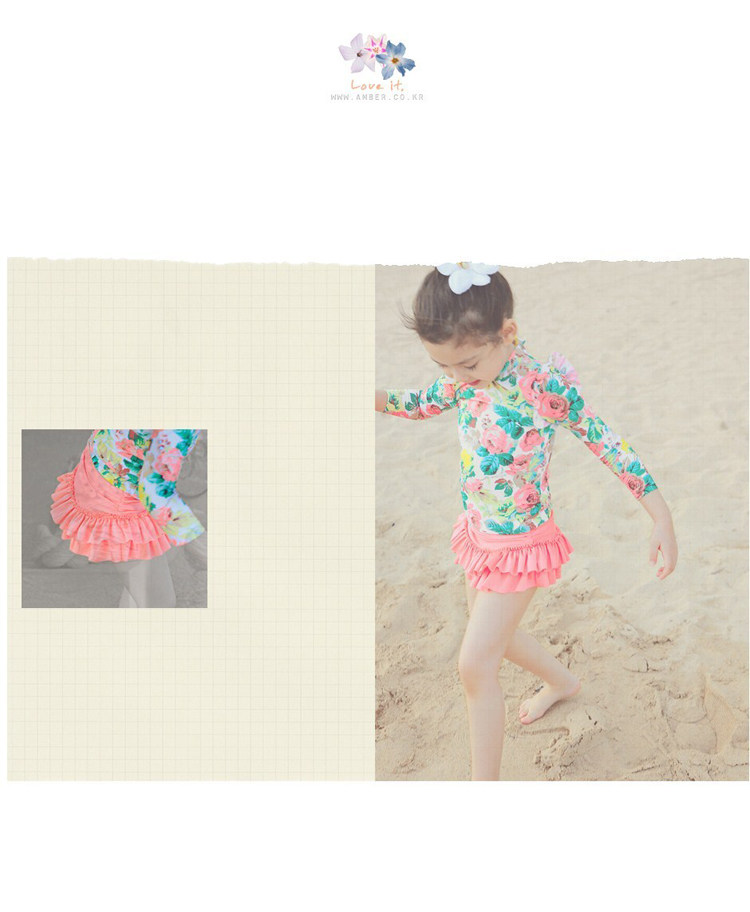 女の子大き花柄長袖日焼け止め ビキニ・水着