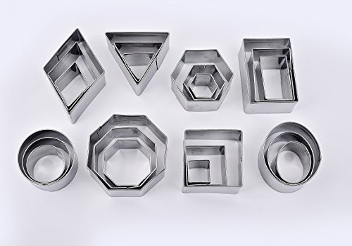ShengHai Geometric Shapes Cutters, Mini Cutters Including Hexagon, Square, Circle, Oval, Octagon, Diamond Molds for Pastry, Fondant, Donuts, Clay –Stainless Steel, 24 Pc Set