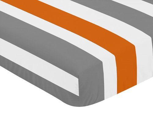 -. Title : Fitted Crib Sheet for Modern Gray and Orange Stripe Baby/Toddler Bedding - Stripe P.R.Int