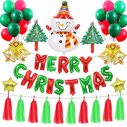 ⛄【セット内容】:「MERRY CHRISTMAS文字」x1、「風船」x20(緑x10、赤x10)、「特大雪だるまバルーン」x1、「クリスマスツリーバルーン」x2、「スターバルーン」x2、「ベルバルーン」x2、「赤色タッセルガーランド」x1、「緑色タッセルガーランド」x1、「リボン」×1、「エアーポンプ」×1、「タイプ」×1巻 ⛄【安全・安心】:天然ゴム、環境や肌に優しい素材です,風船は生分解性素材、リサイクル可能材料で作られたので環境にも優しくお子様にも安全!素材特別な匂いがあるけど、無害なんです、ご安心ませ! ⛄【空気入れ付き】:嬉しいハンドポンプ付属、簡単にバルーンを膨らませて、口の結び方も簡単で、繰り返して利用可能です。もし水素やヘリウムでこれらのアルミバルーンを膨らませ、効果が持ち出されます。 ⛄【収納便利】:折り畳む状態でお届けします。開くだけ、簡単に出来上がり。使わない時は簡単に折り畳めて、収納も便利です。 ⛄「忙しい」「装飾に自信がない」「組み合わせに迷う」そんな悩みを解決オールインワンパッケージ!クリスマスイベントや販促・ホームパーティーなどで大活躍間違いなしのセットとなっております!