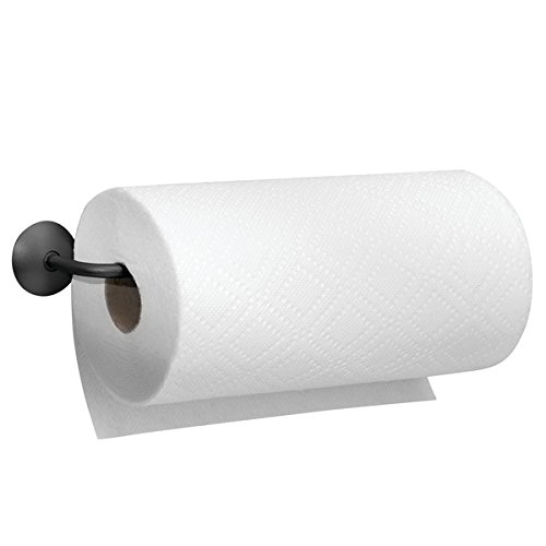 Paper towel holder mounts to wall or under cabinet