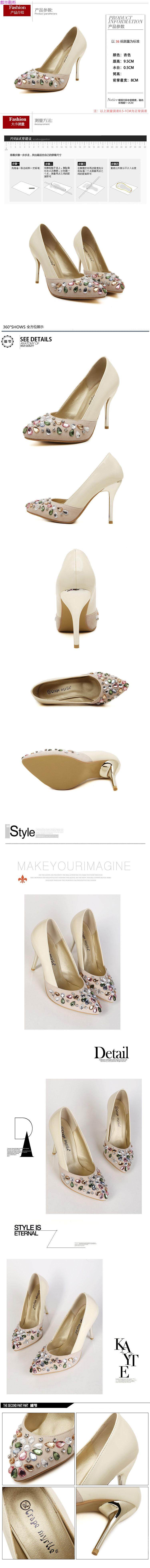 春季新款高跟鞋优雅个性水钻单鞋尖头细跟皮面正品浅口女鞋朝