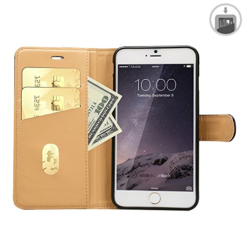 iPhone 6S Plus case, Labato Premium Leather Wallet Case Cover with Flip Case Design [Stand Feature] [Wallet Function] [Magnetic Closure] for Apple iPhone 6S Plus and iPhone 6 Plus 5.5'' in Black(Lbt-I6L-04Z10)