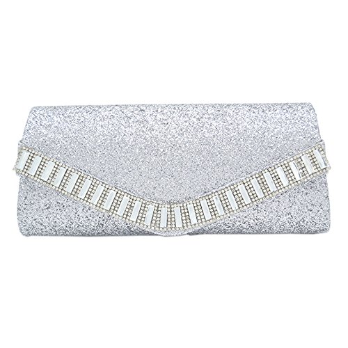 -. Feature : Fold over front snap magnetic closure with rhinestone decoration / Free your hands with detachable hidden-clasp chain strap to wear as a shoulder/cross body bag - Put the chain inside and use it as a clutch / Size: 9.5"L x 4"H x 2.5"D.- Easily fit a cell phone, wallet, compact mirror, lipstick and a pack of gum / Lined interior with one back-wall slip pocket / Ideal for any special formal occasions or a night out. Great gift idea for wedding, anniversary, valentine's day, or Christmas