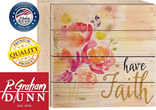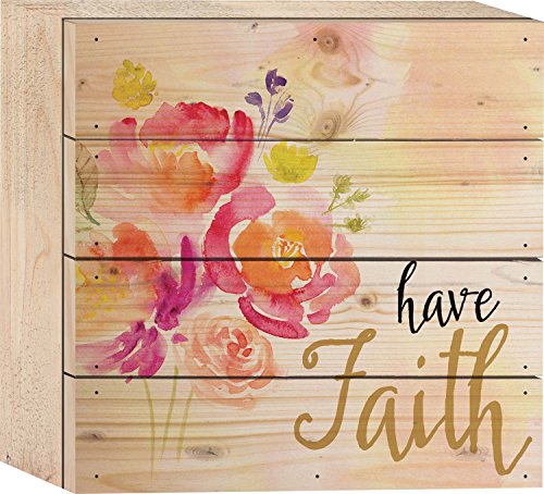 Have Faith Watercolor Floral Roses 6 x 6 Wood Plank Design Wall Box Sign