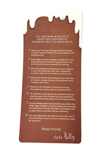 It is encouraged that you be creative and hang Holly’s mistletoe in the most bizarre and unexpected places. This leads to a lot of fun, laughter and exciting kissing adventures!