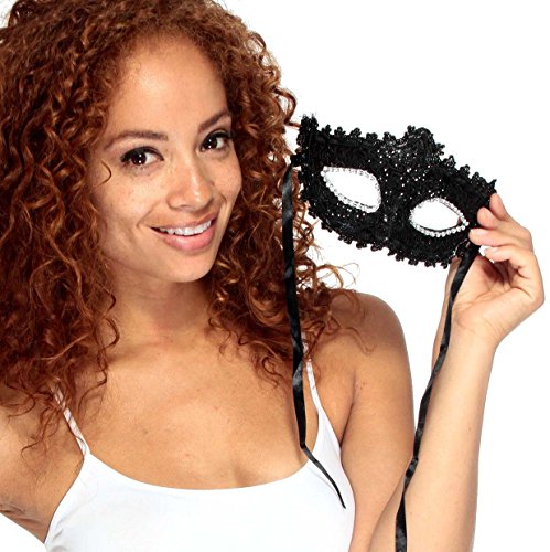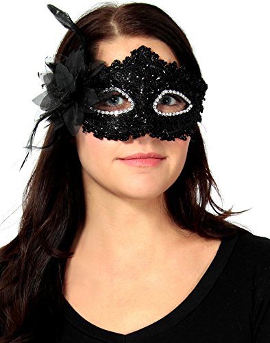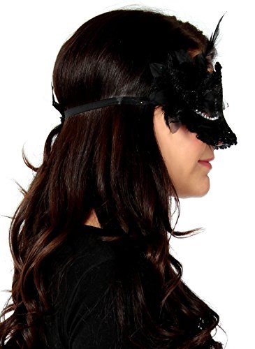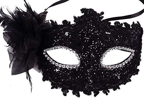 -. Brand : Simplicity -. ClothingSize : One Size -. Color : Black -. Department : womens -. Feature : Perfect for Halloween, Christmas party, masquerade, Mardi Gras, wedding, prom, fashion shows and costume party / Mask is carefully hand-made with the finest quality and eco-friendly materials / Easier to wear and forms to fit your face, so it would work with anyone / Stand out with our amazing colors, you will definitely get lots of attention / Venetian style fancy mask for party dress up -. Model : GP13110208 -. ProductGroup : Apparel -. ProductTypeName : ADULT_COSTUME -. Size : One Size -. Title : Venetian Eye Mask Fancy Dress Accessory w/ Feather Flower Lace for Party Ball