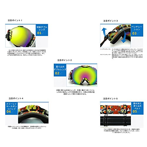 ?【흐림금지 더블 렌즈】내측에 흐림금지 가공 렌즈,외측에 상처가 붙어 어려운 렌즈의 2매의 렌즈에 공기층을 만들기,바깥 공기와 내향적의 온도 차이 로 인해 흐림을 감소하고, 더욱 더 공기를 효율적이게 받아들이는 ventilation에 의해고글 내부의 기류를 콘트롤.신선한 바깥 공기를 받아 들여 따뜻하게 습한 내향적을 배출.이상 적인 공기의 흐름(유행)을 콘트롤 하여 흐림을 막습니다.