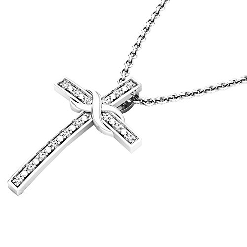 -. Binding : Jewelry -. Brand : DazzlingRock Collection -. Color : Silver -. Department : womens -. Feature : This Stunning Pendant is a piece of jewel that will certainly amaze you. / Items is smaller than what appears in photo. Photo enlarged to show detail / Satisfaction Guaranteed. Return or exchange any order within 30 days. / All our diamonds are conflict free. / Gemstone : Diamond -. Label : DazzlingRock Collection -. Manufacturer : DazzlingRock Collection -. Model : K5282-P -. MPN : K5282-P -. PartNumber : K5282-P -. ProductGroup : Jewelry -. ProductTypeName : FINENECKLACEBRACELETANKLET -. Publisher : DazzlingRock Collection -. Studio : DazzlingRock Collection -. Title : 0.10 Carat (ctw) Round White Diamond Ladies Cross Pendant (Silver Chain Included)