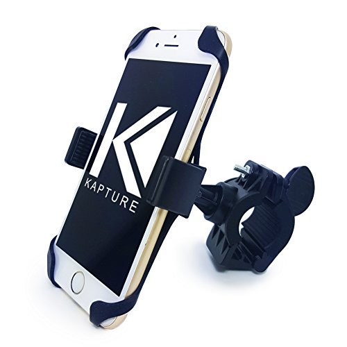 Cell Phone Mount Holder for Bicycle and Motorcycle by Kapture. Enable GPS in Cell Phone and Mount to Handlebar. Adjustable Width (up to 3.5”) and Securing Corner Bands for Extra Stabilization