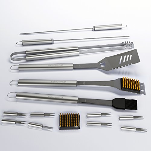 A COMPLETE KIT-Swiss knife spatula,power tongs,basting brush,cleaning brush,corn holders and skewers