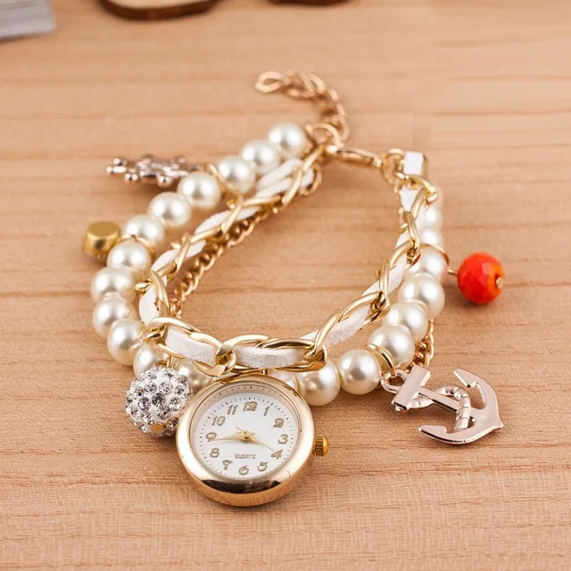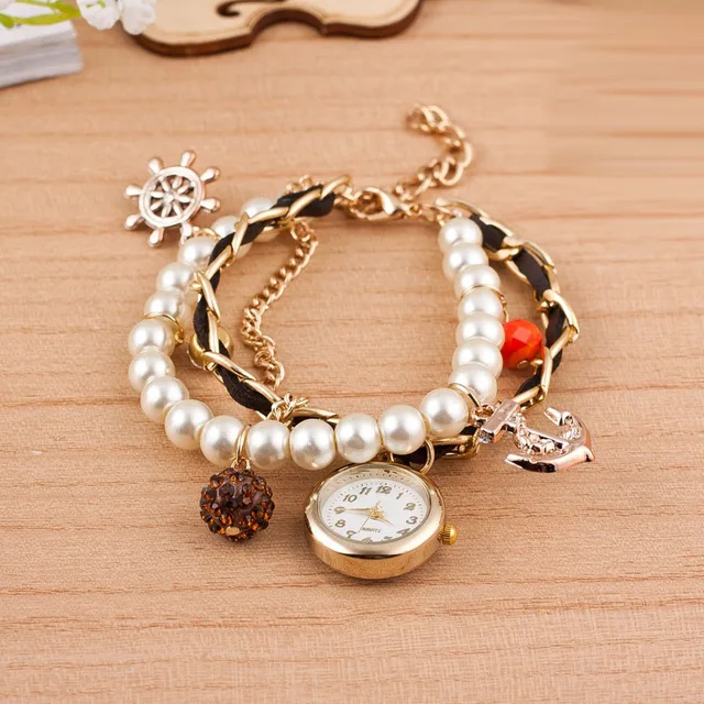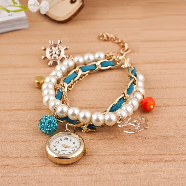 | [해외] 럭셔리 여성 석영 매력 진주 합금 앵커 펜던트 손목 시계 여자 우아한 팔찌 시계 여성 드레스 시계 선물 |