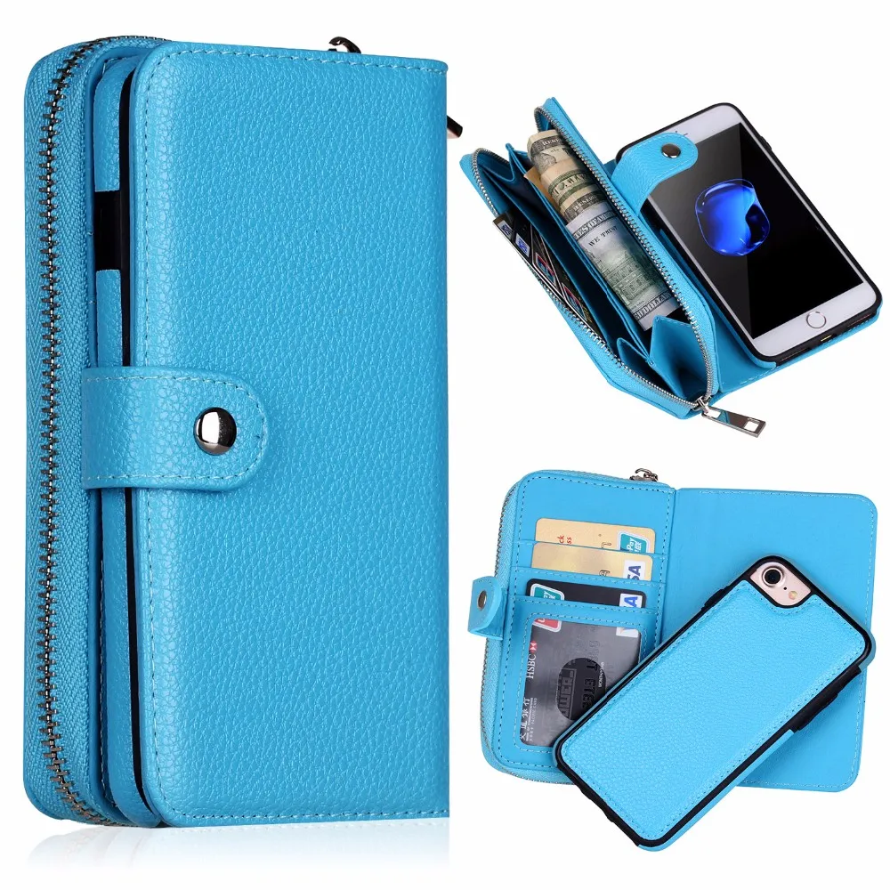 Type 3: Wallet PU Zipper Bag Purse Case for iPhone 6s 7 8 6 Plus X Cover