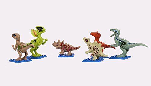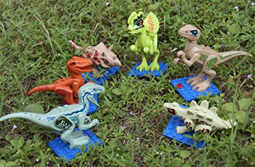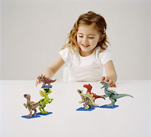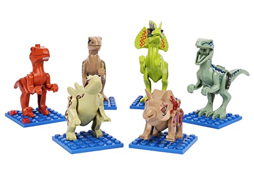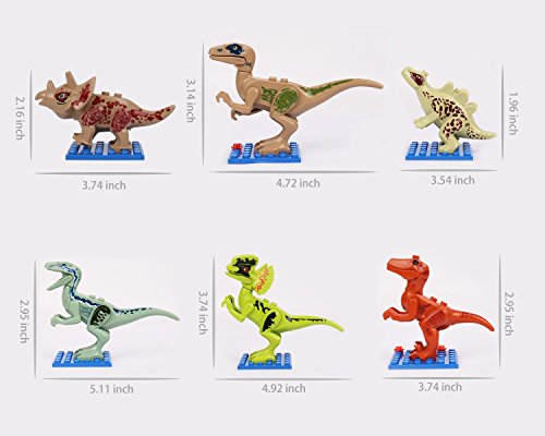 - FEATURES: 6 different dinosaurs minifigures, the assembly is very easy and fast. You can fix the dinosaurs at the included Base. Great for Kids playing and studying or collectors.