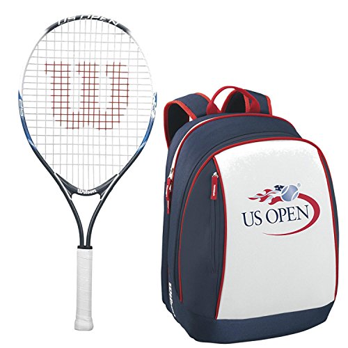 Studio : Wilson Publisher : Wilson Binding : Misc. Product Description The Wilson US Open Junior Tennis Racquet is specifically designed and approved for children 10 and under. It is a lightweight frame that's perfect for beginners. This Wilson tennis racquet is available in a variety of sizes. Keep them organized with a Limited Edition US Open tennis bag or backpack. These bags are designed to store more than one racquet, or one racquet and other items needed for practice. 0
