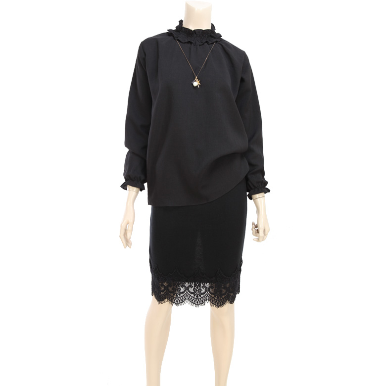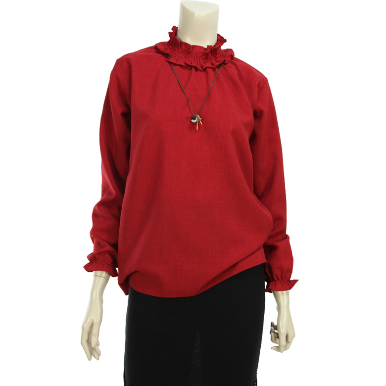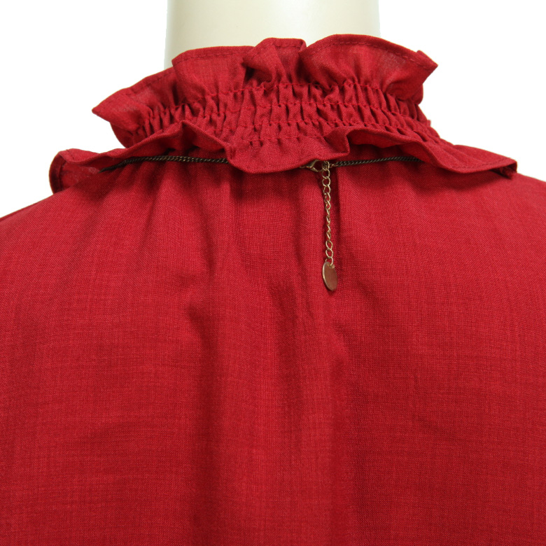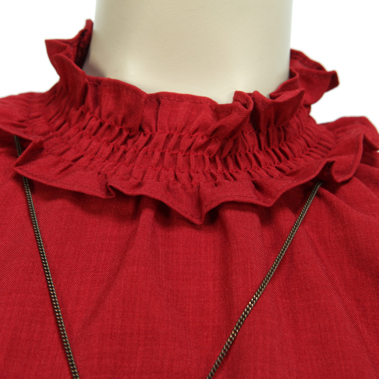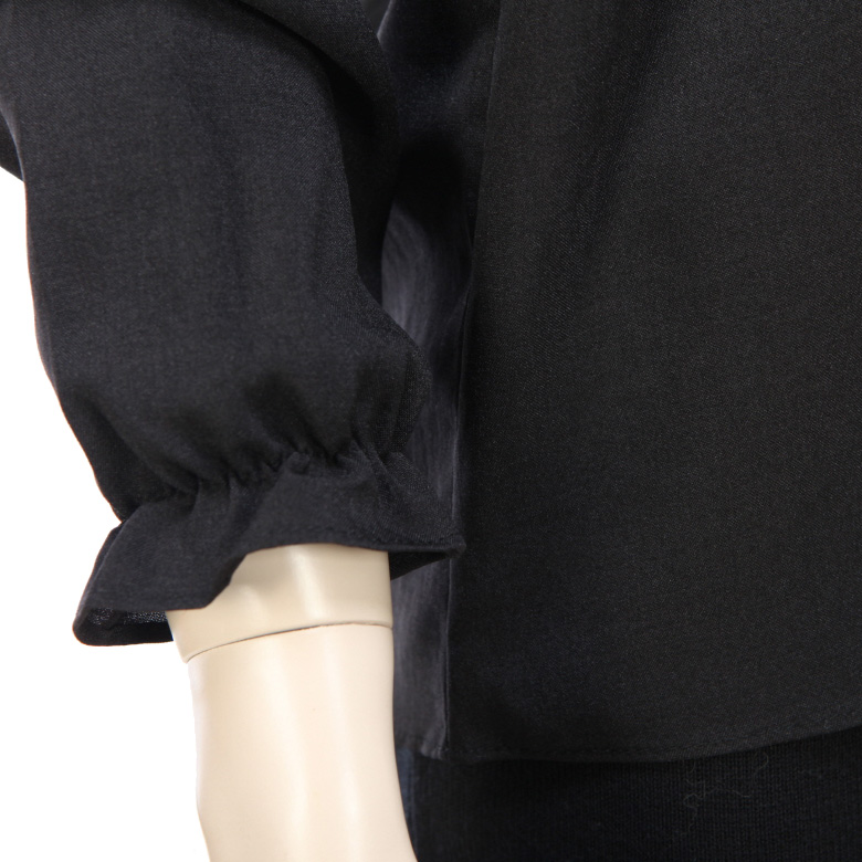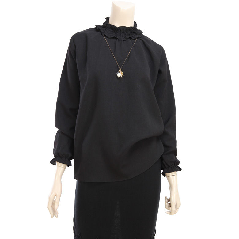 소매는 밴딩 프릴로 되어있으며 넥카라에는 반폴라스타일로