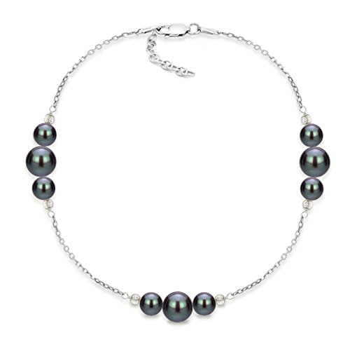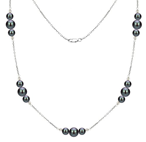 An Nice Sterling Silver 6-6.5mm and 10-10.5mm Dyed-black Freshwater Cultured Pearl Station Necklace 18" Long, Secured with a Lobster-claw Clasp. This Necklace Comes with a Matching 7" Long Station Bracelet, with 1inch Long Extended Cable Chain for a Longer Use, dan Stud Dangle Earrings Set. Wear This as a Set of Separately to Match you Outfit. Please Contact Us For Detail If You Could Not See What You Need.