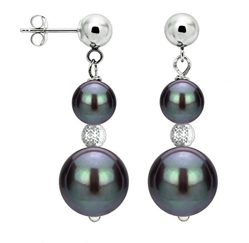 Our pearls represent the finest in pearl selection, hand-picked for its luster, cleanliness quality, and color. The black color of these pearls are dyed or color treated. (Note: the color of dyed-black for cultured freshwater pearl is never jet-black, but ranging from tahitian-like blue green, or royal-aubergine-purple. In pearl grading terminology, black means a dark color, as jet black is not a natural-like pearl color).