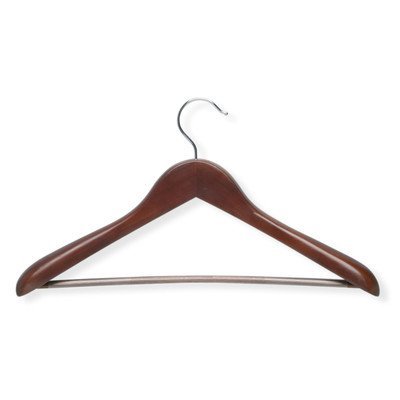 -. Feature : Deluxe Contoured Suit Hanger / Contoured wood, locking bar / 11 x 17-3/4 / perfect for suits and pants / Home organization made easy!