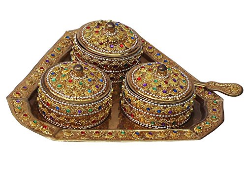 SouvNear 190803032947 9" Triangular Tray with 3 Bowls and a Spoon, 9"