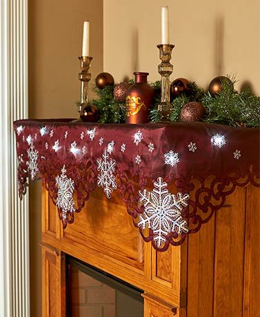 Lighted Snowflake Mantel Scarves ( Burgundy )