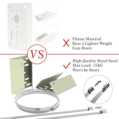 【Adjustable Steel Ring】This pole mount bracket allows camera installers to mount outdoor security cameras or security camera housings to round poles with diameters max 8 inches using the included steel straps.