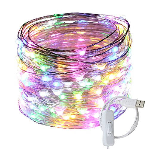 RUICHEN(TM) Fairy Lights USB Plug Power 66Ft 200 LED Silver Wire Starry String Lights with ON/OFF Switch for Bedroom Indoor Outdoor Decorative(Multi Color)