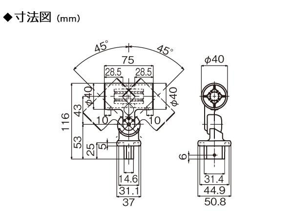 支柱の先端に付け、手すりをこのジョイントに差し込むと継ぎ足して有効に使用できます。設置場所に合わせて手すりの角度調節が行えます。