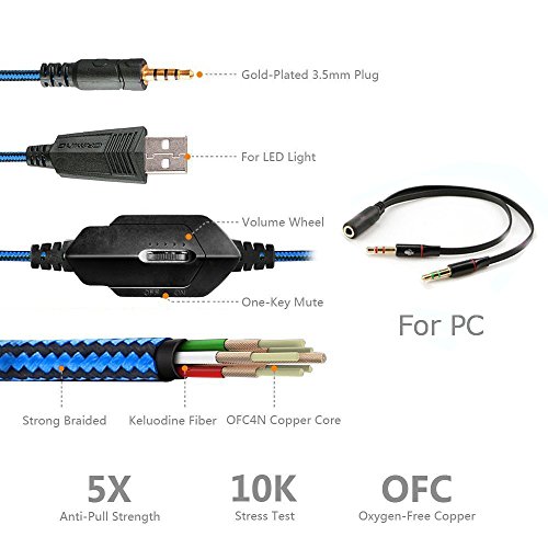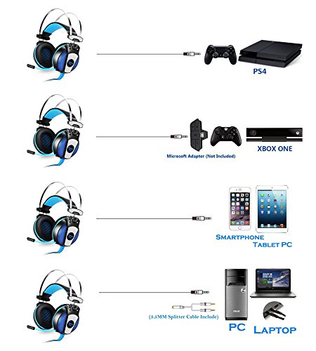 -. Title : Gaming Headset KOTION EACH 3.5mm Game Headphone Earphone Headband with Mic Stereo Bass LED Lighting for PlayStation4 PS4 Tablet Laptop PC Mobile Phones Smartphones