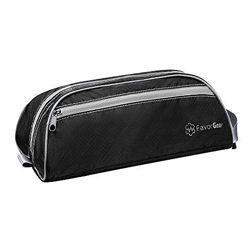 FavorGear Travel Toiletry Bag - Waterproof Toiletry Organizer Portable Makeup Pouch Small Cosmetic Bag for Overnight Trip (Black)