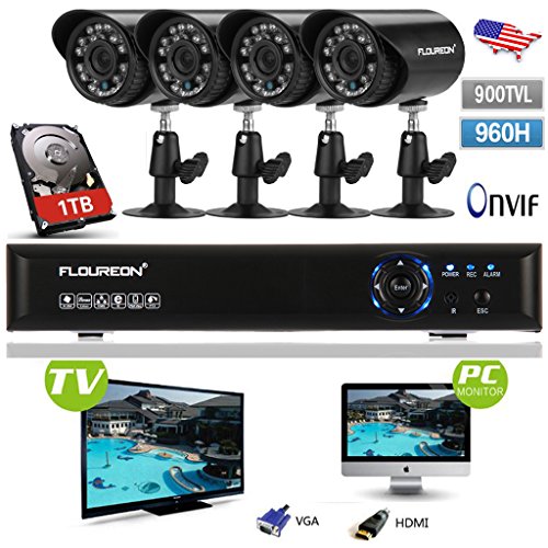 -. Title : Floureon 4CH 960H Onvif DVR Digital Video Recorder + 4 x 900TVL IR-CUT Night Vision Bullet Camera + 1TB HDD, Outdoor Indoor Waterproof Home Security Surveillance Camera System Kit