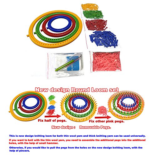 Round Knitting Loom board Set of 4 looms for Hats, Bags, Socks, Legwarmers, Wristwarmers, Cowls, and Scarves Craft Kit Tool with Hook Needle with pegs unfitted/ flat package