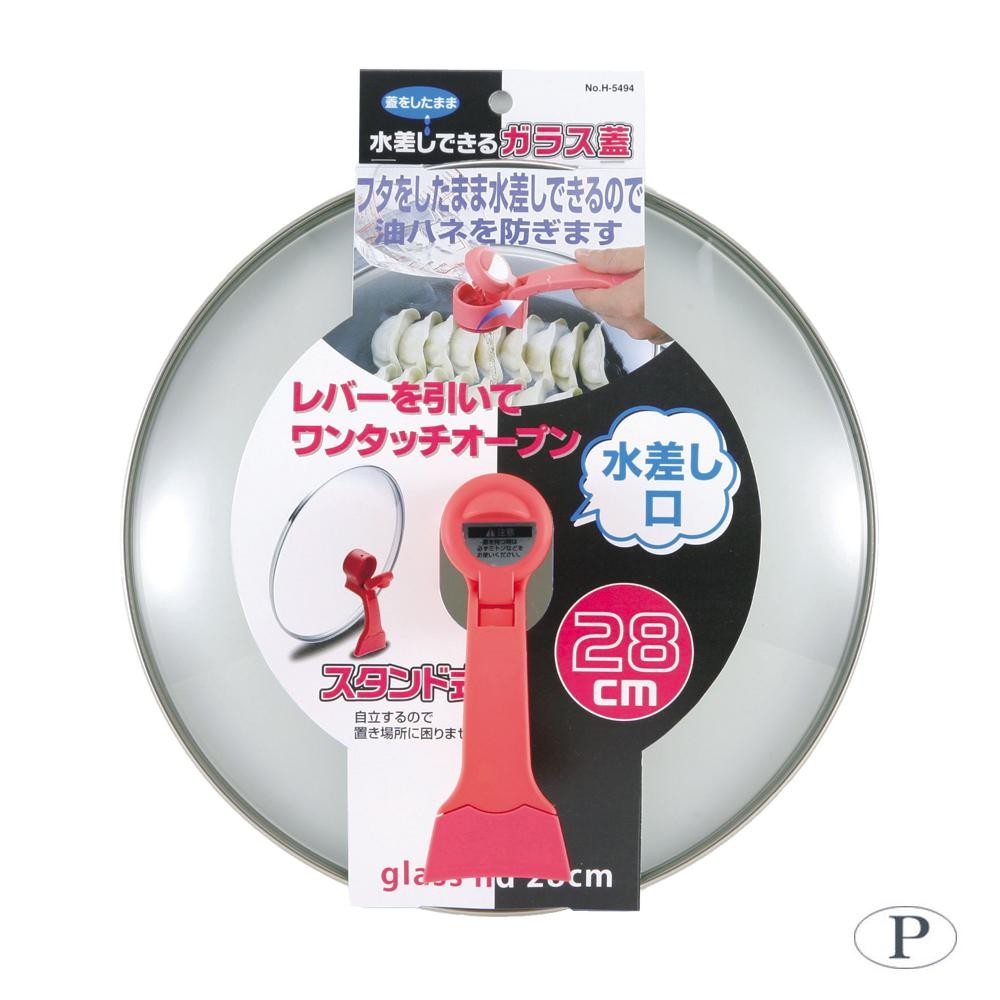 | 水差しが蓋をしたままできるので、油ハネの心配がありません。立てて置くこともできる、便利なガラス蓋です。 |