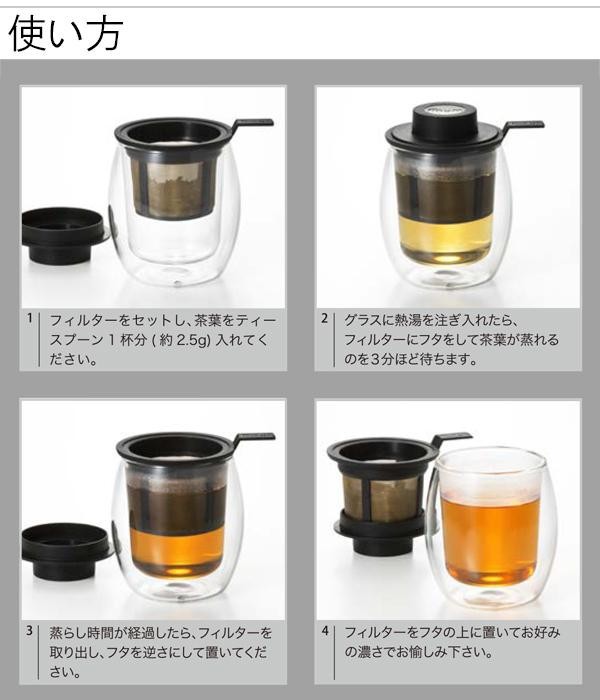 | 一人分のお茶をいれたいときにオススメのフィルター付きマグ。 |