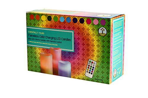 Real Wax Electric Flameless Candle Pillars, Multicolor including Realistic Flame Flickering LED Flame with Remote Control and Timer (Set of Three)