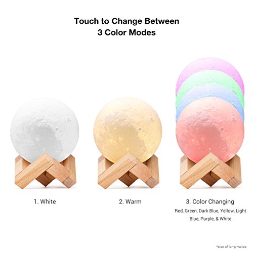 COLOR CHANGING – touch change between 3 color modes for multiple effects including color shifting mode which rotates between 7 colors and standard white mode for a relaxing, ambient lighting effect