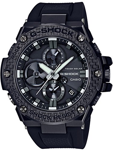 Brand, Seller, or Collection Name:Casio Part Number:GSTB100X-1A Item Shape:Round Display Type:Analog Metal stamp:none Case diameter:50 millimeters Band Material:Rubber Band Color:Black Dial color:Black Calendar:Date Special features:connected Movement:smart solar
