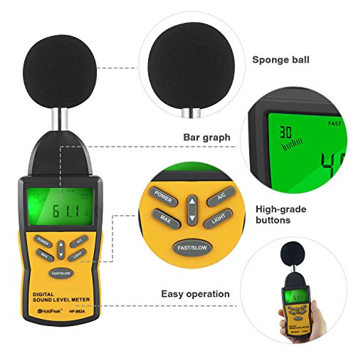 HOLDPEAK 30-130dBA 30-130dBC LCD Digital Sound Level Meter Noise Volume Measuring Instrument Decibel Monitoring Tester